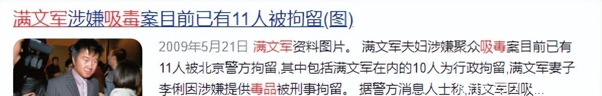 2009日凌晨,北京市公安局禁毒总队在朝阳区某娱乐场所开展突击清查行动,于一间包厢内查获十余人涉嫌集体吸食毒品,其中包括满文军及其妻子李俐,现场收缴K粉、摇头丸等多种违禁品。